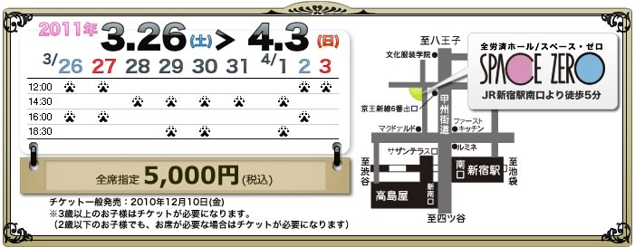 | 公演日時 | 2011年 3月26日(土)〜4月3日(日) | ||||||||||||||||||||||||||||||||||||||||||||||||